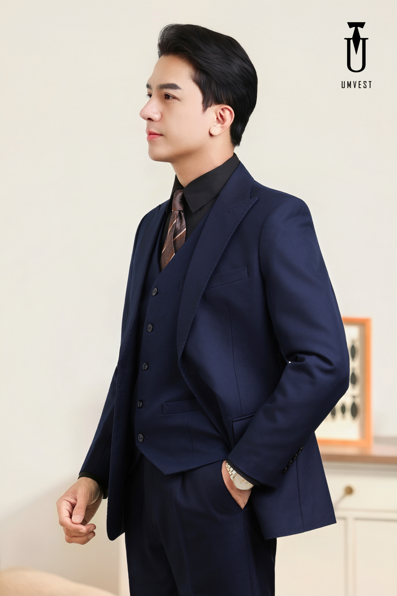 Bộ vest caro kem